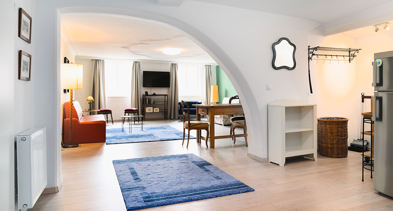 I nostri appartamenti sono situati in una posizione centrale nell'incantevole centro storico medioevale, di preciso nella storica casa "Palluahaus" del XVI secolo, che è stata ristrutturata nel 2015. Vi aspetta un'atmosfera storica, un design moderno e il massimo comfort. Camere luminose e spaziose, cucine moderne, letti comodi, TV a schermo piatto e Wi-fi gratuito sono solo alcuni dei vantaggi dei nostri appartamenti “Golden Roof Apartments”.